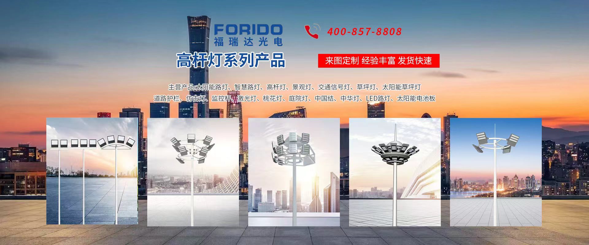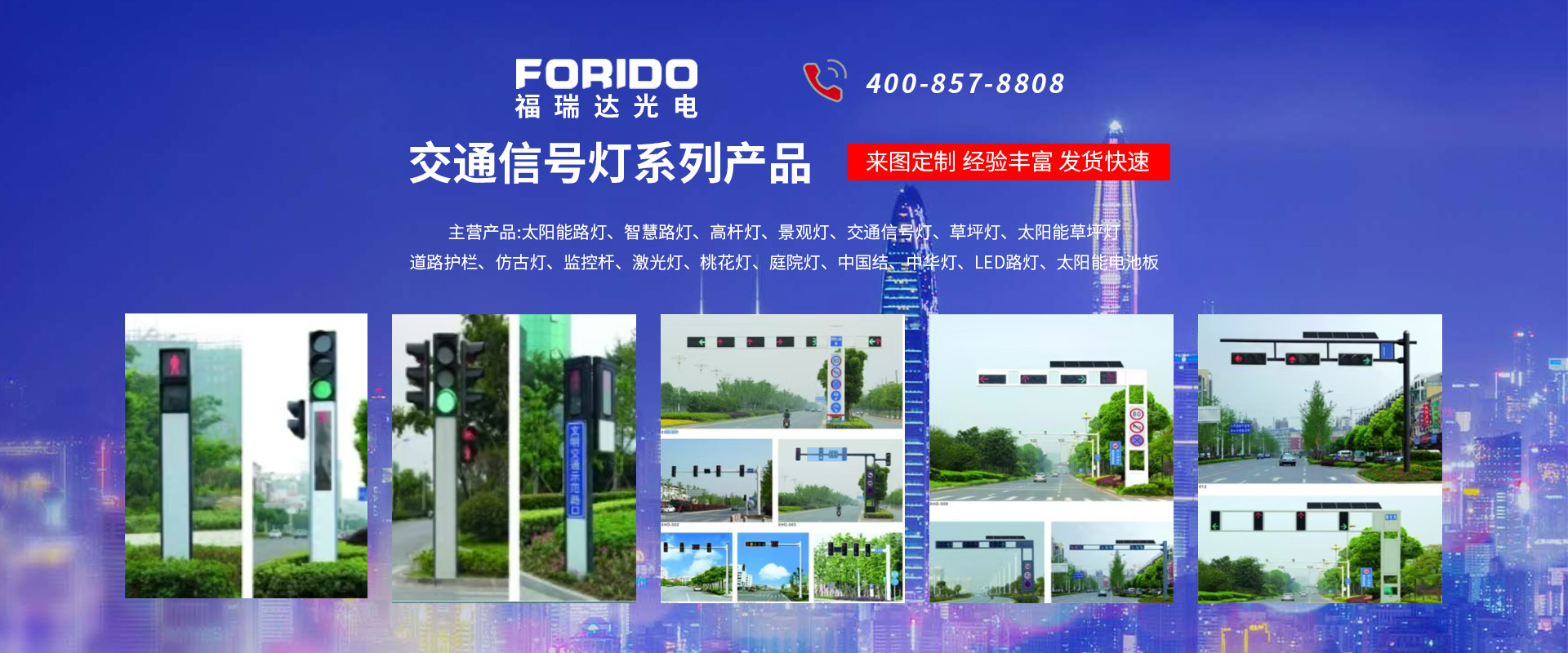 揚(yáng)州福瑞達(dá)光電科技有限公司位于淮左名都?xì)v史文化名城、中國(guó)路燈制造基地?fù)P州市北郊菱塘工業(yè)園,公司占地面積76000平方米,注冊(cè)資金10518萬(wàn)元,擁有高級(jí)技術(shù)嫻熟的員工280多人,擁有大型折彎?rùn)C(jī)、激光切割、數(shù)控注塑機(jī)、壓鑄機(jī)、自動(dòng)埋弧焊、氣焊、彩色粉末靜電噴塑等大型自動(dòng)化設(shè)備,我公司是一家集設(shè)計(jì)、研發(fā)、生產(chǎn)、銷(xiāo)售、施工安裝服務(wù)為一體的戶(hù)外交通照明產(chǎn)品制造商,主要生產(chǎn)智慧路燈、太陽(yáng)能路燈、LED路燈、高桿燈、景觀燈、交通信號(hào)燈、交通標(biāo)志牌、通信鐵塔、路跨鋼結(jié)構(gòu)、公交站臺(tái)、太陽(yáng)能光伏組件、景點(diǎn)亮化、樓宇亮化工程的設(shè)計(jì)施工等。公司秉承開(kāi)拓創(chuàng)新、銳意進(jìn)取、精誠(chéng)服務(wù)的企業(yè)精神,堅(jiān)持以“誠(chéng)信為本、技術(shù)為先、服務(wù)是金”的合作理念,我們憑借先進(jìn)的制造工藝、優(yōu)質(zhì)的產(chǎn)品質(zhì)量、合理的市場(chǎng)價(jià)格和完善的售后服務(wù)贏得了廣闊的市場(chǎng)和客戶(hù)的信賴(lài)。 我公司已通過(guò)ISO9001質(zhì)量體系認(rèn)證、ISO14001環(huán)境管理體認(rèn)證,CQC產(chǎn)品認(rèn)證,中國(guó)節(jié)能產(chǎn)品認(rèn)證,通過(guò)“CCC”強(qiáng)制性產(chǎn)品認(rèn)證,具有市政總承包,照明,交安,設(shè)計(jì)等資質(zhì)···